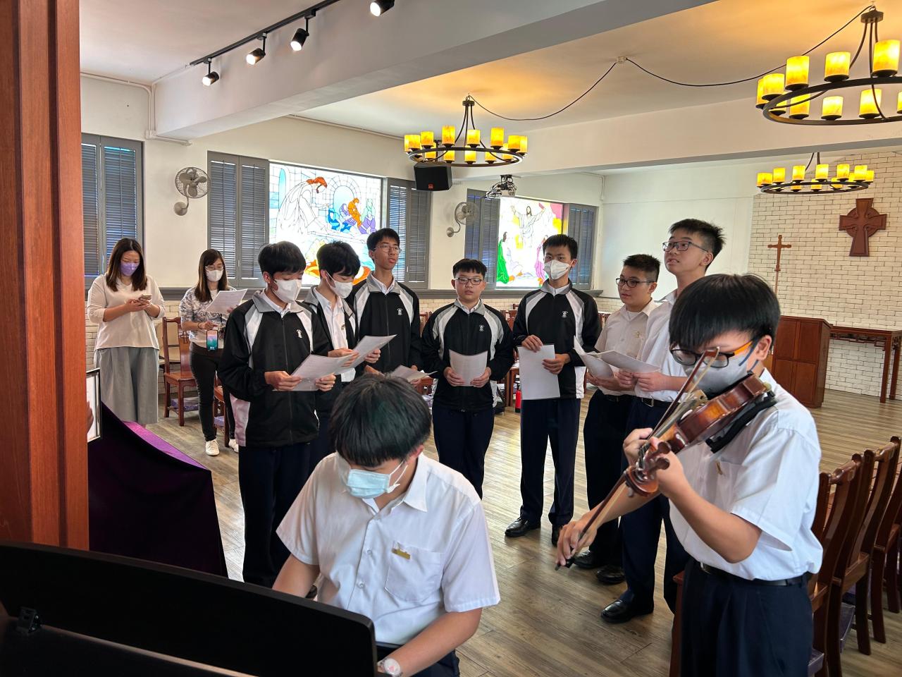 The school hosted its annual Gospel Days from November 12 to 14, featuring a variety of activities, including hymn sharing, Gospel book fair, Gospel reading, Bible quiz competition, hymn guessing game, and visit to St. James' Church. The Fellowship committee members served with great enthusiasm, and students participated actively. The wooden cross souvenirs were particularly popular. Although it was disappointing that the planned Gospel music concert had to be cancelled due to the typhoon, we firmly believe that the Lord's guidance and arrangements are for the best.