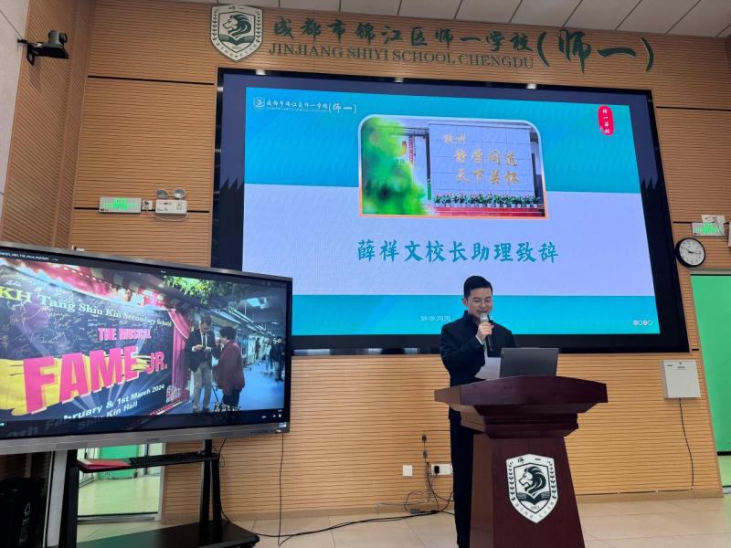 本次交流團的一大亮點,是到訪我們的姊妹學校—成都市錦江區師一學校。學生在校內參與多元且富趣味的活動,包括烹飪課、書法課與舞蹈課等;同時亦參加了一場友誼羽毛球比賽,透過共同運動增進彼此的友誼。