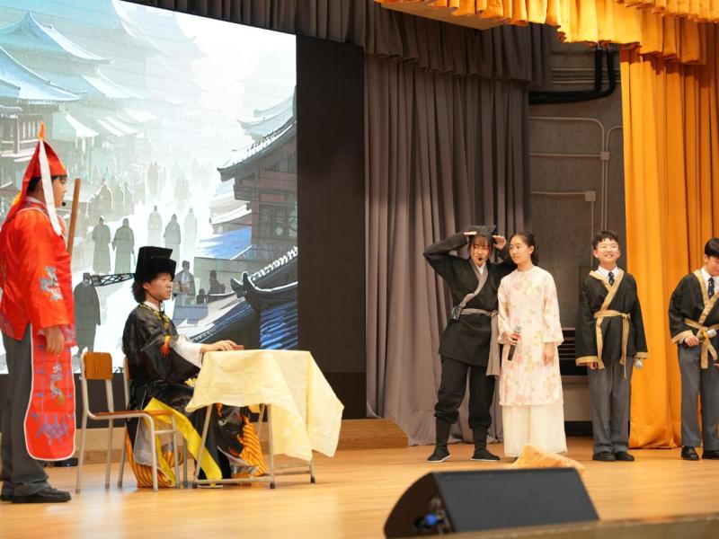 中國語文及文化學會、數學學會及公民教育小組合辦的「中華文化暨普通話同樂日」在學校禮堂隆重舉行,場面熱鬧。活動設有面粉公仔、中國繩結、古彩戲法及七巧板等十多個攤位,同學投入參與,樂在其中。包公審奇案短劇演繹生動,牽動全場氣氛;雜耍表演令觀眾拍案叫絕·。活動既展現中華文化的博大精深,又能提升同學對普通話的興趣。