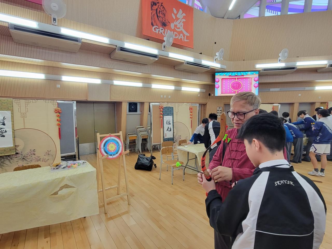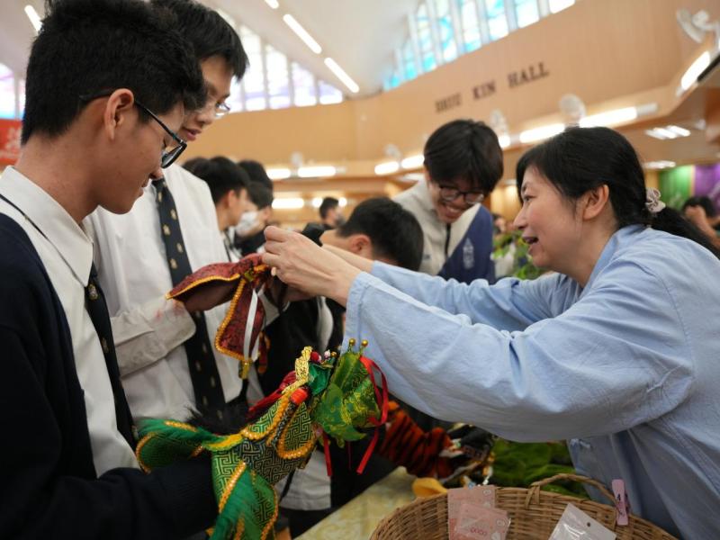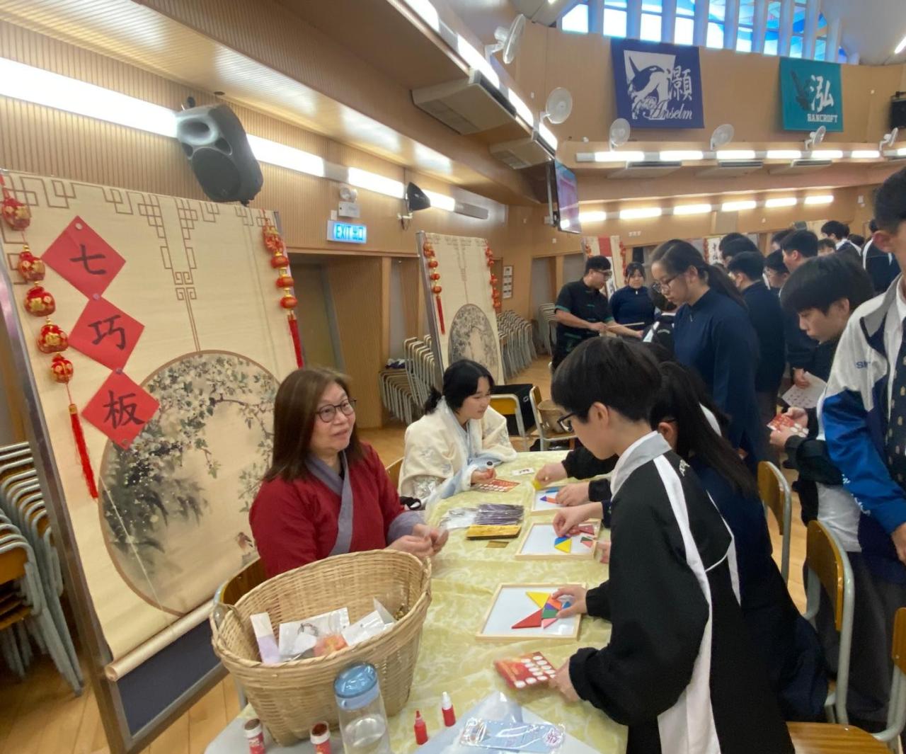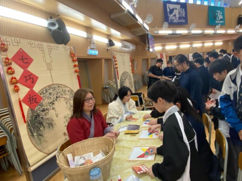 The Chinese Language and Culture Society, Mathematics Society, and Civic Education Team jointly organized the “Chinese Culture and Putonghua Fun Day” in the school hall, creating a lively atmosphere.