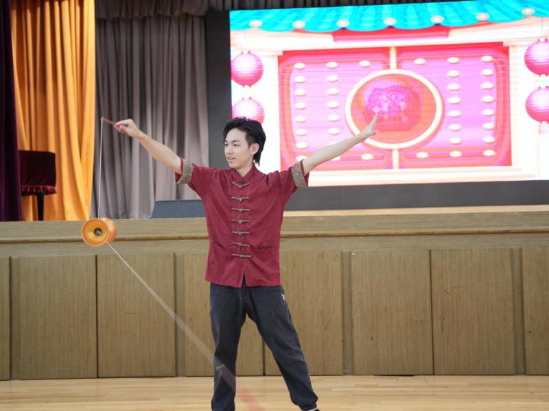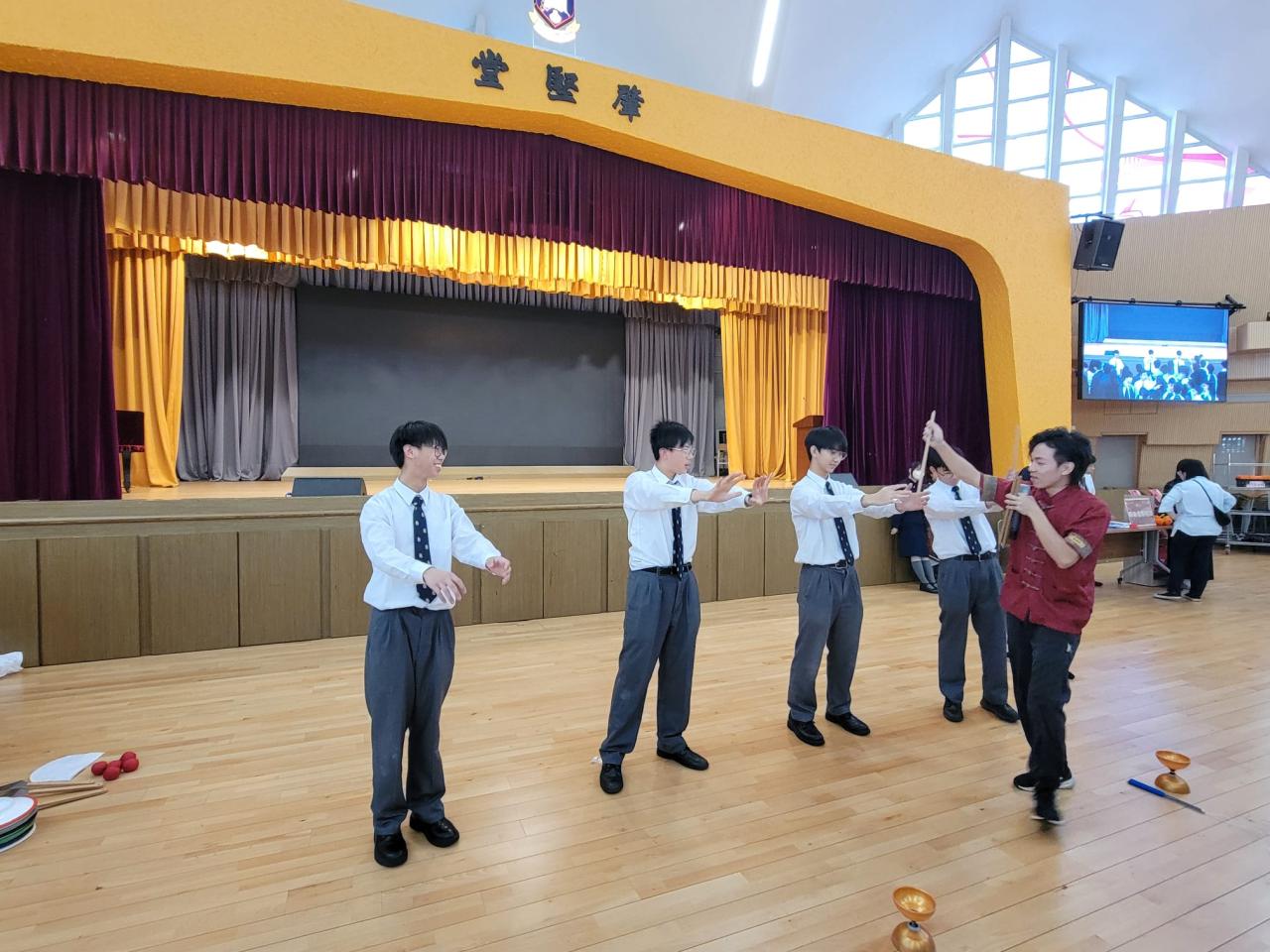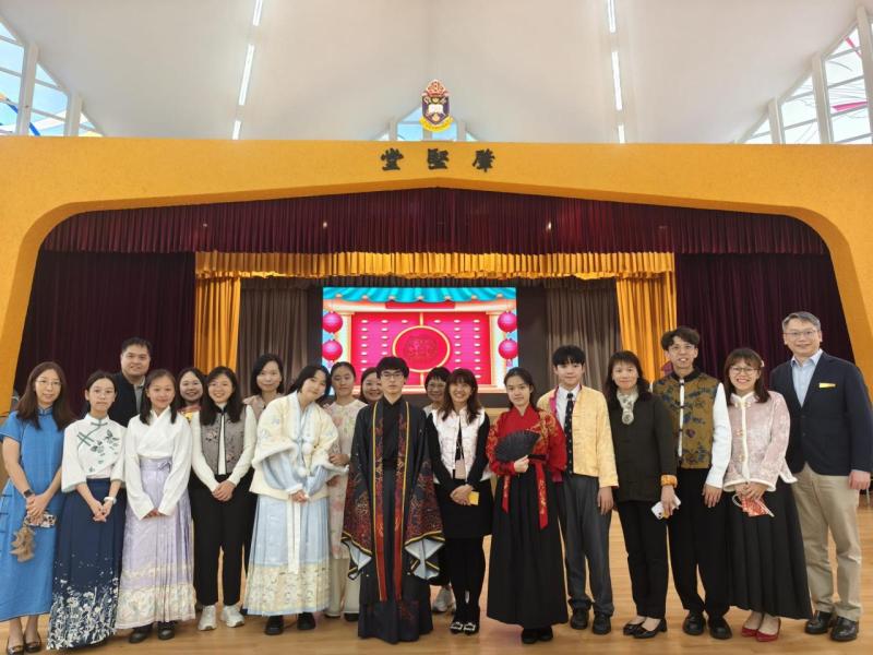 中國語文及文化學會、數學學會及公民教育小組合辦的「中華文化暨普通話同樂日」在學校禮堂隆重舉行,場面熱鬧。活動設有面粉公仔、中國繩結、古彩戲法及七巧板等十多個攤位,同學投入參與,樂在其中。包公審奇案短劇演繹生動,牽動全場氣氛;雜耍表演令觀眾拍案叫絕·。活動既展現中華文化的博大精深,又能提升同學對普通話的興趣。