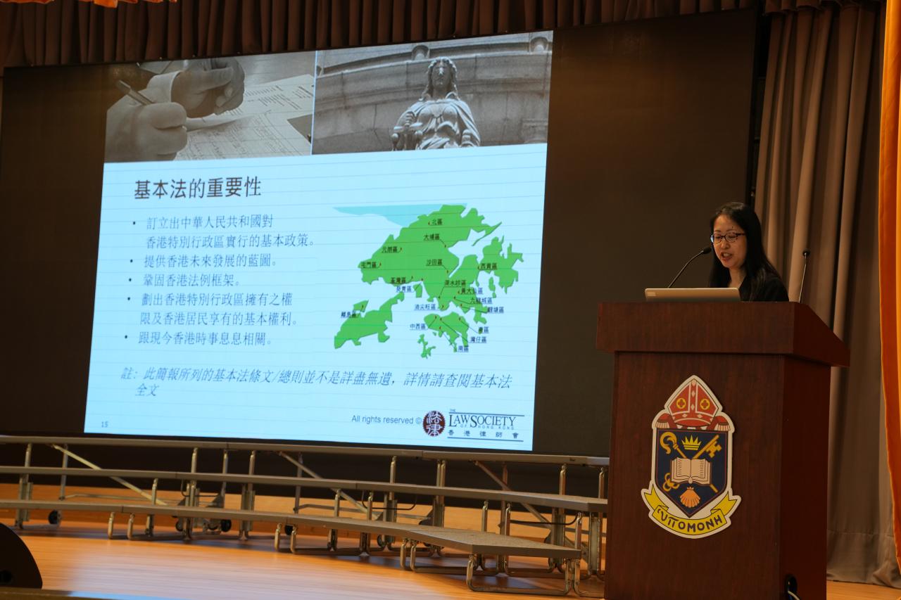 A Talk on the Basic Law was also arranged for all F.1 to F.3 students. A solicitor from the Law Society of Hong Kong explained key concepts of the Basic Law to enhance students’ awareness of their civic responsibilities and rights as citizens.