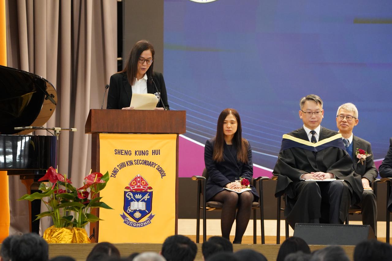 The ceremony commenced with an opening prayer led by Prof. Allan YUEN, followed by a welcome address by our School Supervisor, the Revd. Christine HO. The principal's detailed annual report celebrated the school's accomplishments and gave recognition to the joint effort of both students and staff.
